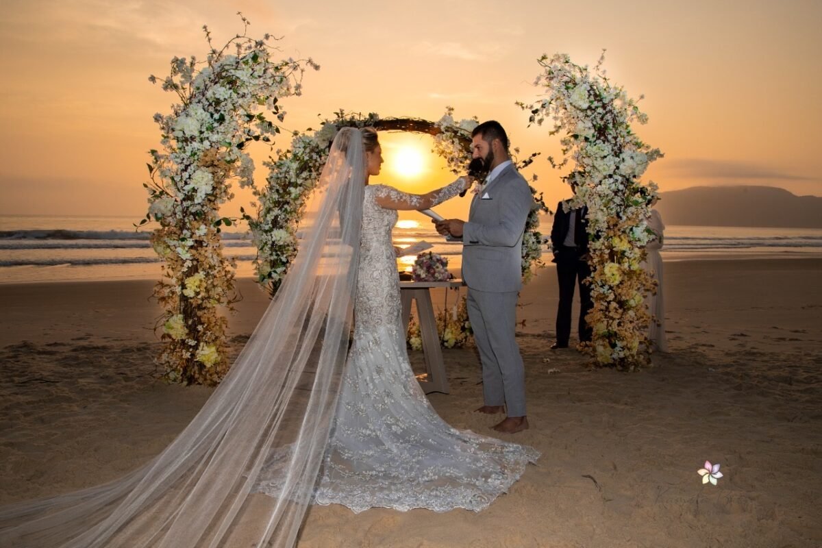 Pode ser um casamento na praia, “pé na areia” ao nascer do sol: