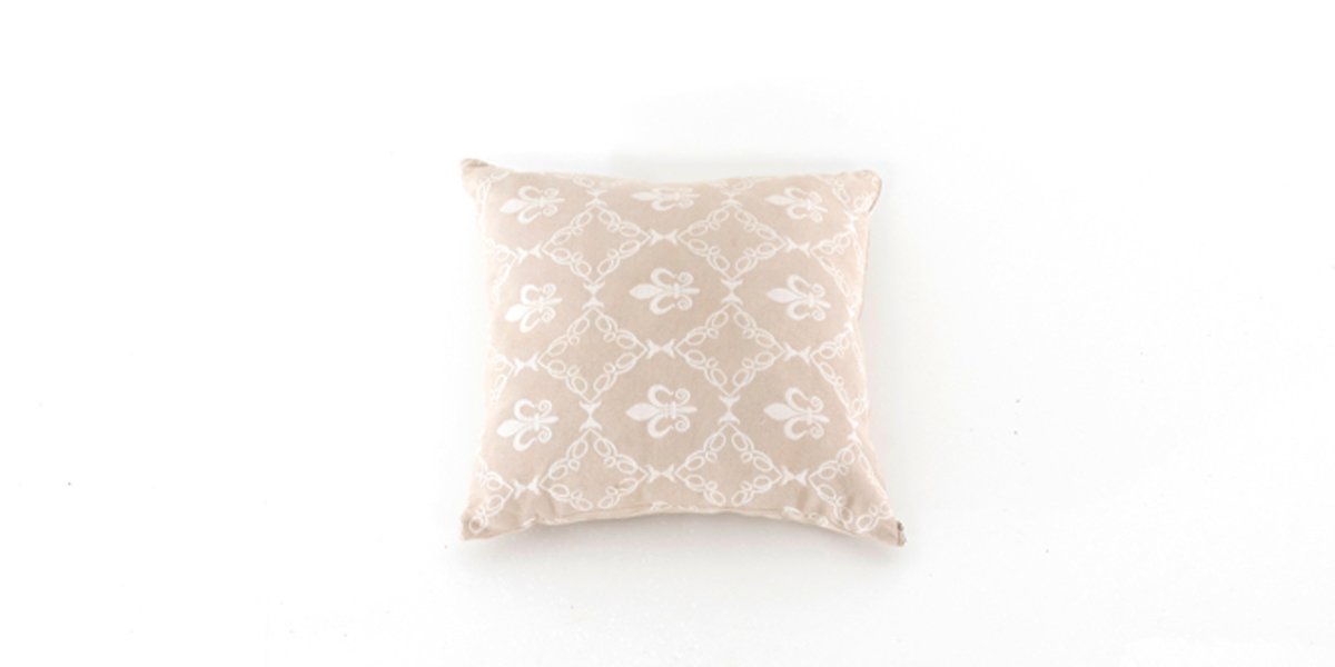 Almofada com desenhos de flor de lis em tom de bege