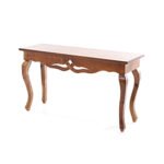 Aparador de madeira com detalhe talhado no tampo e pés Luiz XV