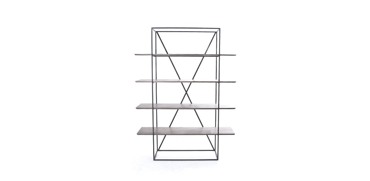 Estante de ferro e madeira
