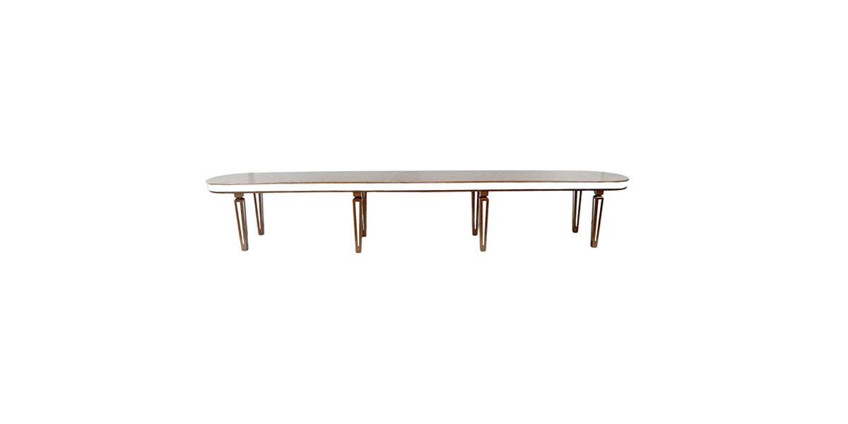 Mesa Bipartida Retangular com os Cantos Arredondados 5 Metros Dourada Espelhada