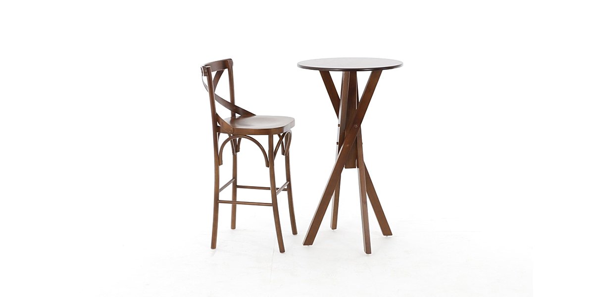 Mesa bistrô alta com pés em X na cor imbuia