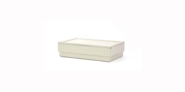 Mesa de centro retangular na cor fendi cinza com gaveta