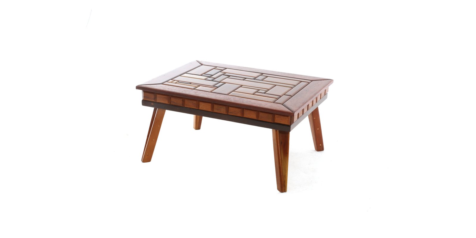 Mesa de centro Madeira retangular com tampo em parquet e pés palito