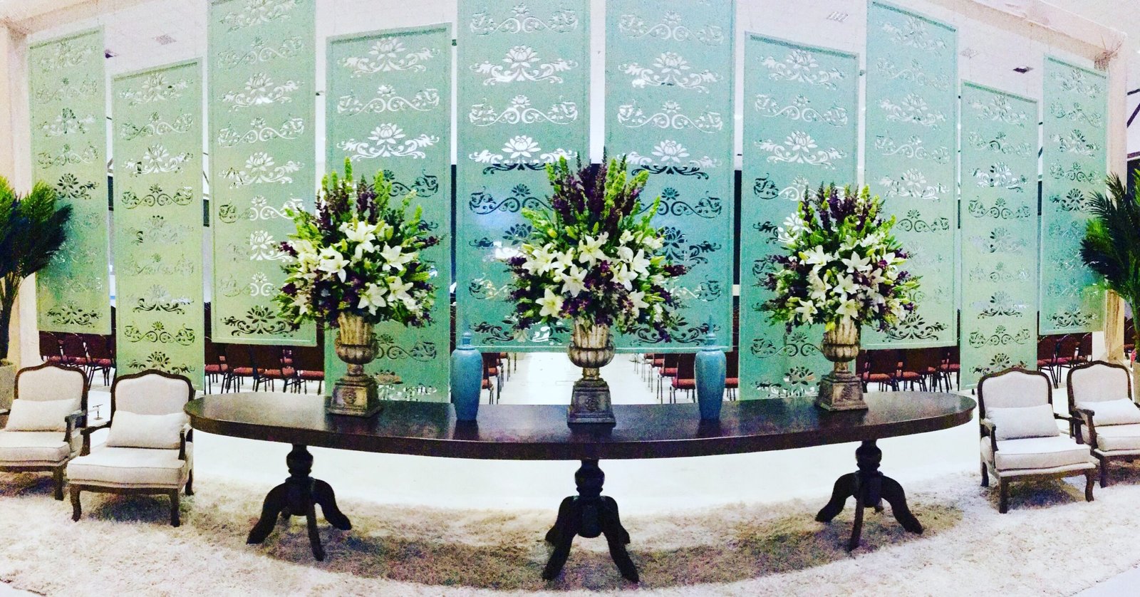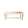 Mesa de Madeira Bipartida Retangular com os Cantos Arredondados Pés Trabalhados 5 Metros Cor Madeira