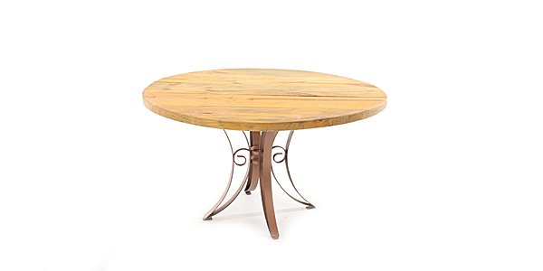 Mesa redonda, pé de ferro cor cobre com tampo em madeira