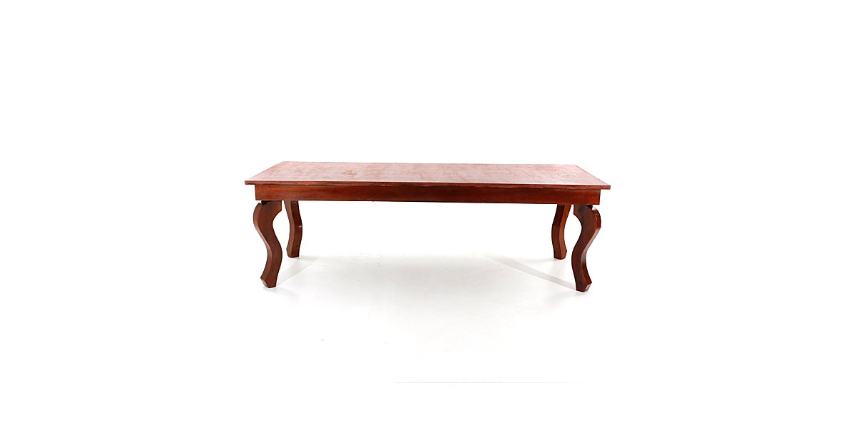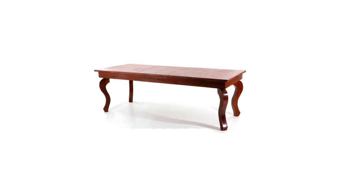 Mesa retangular na cor imbuia com pés Luiz XV