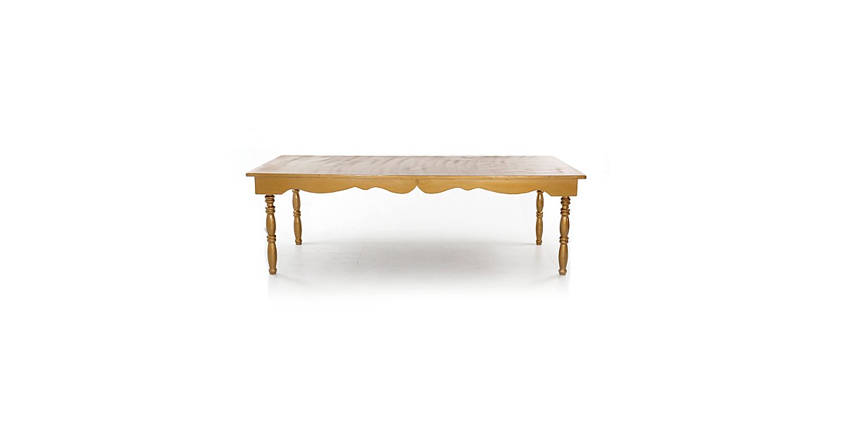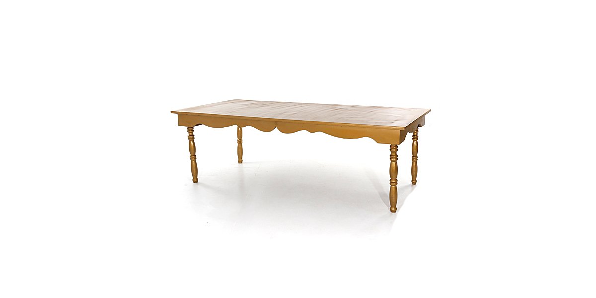 Mesa retangular madeira cor dourada com pés redondos