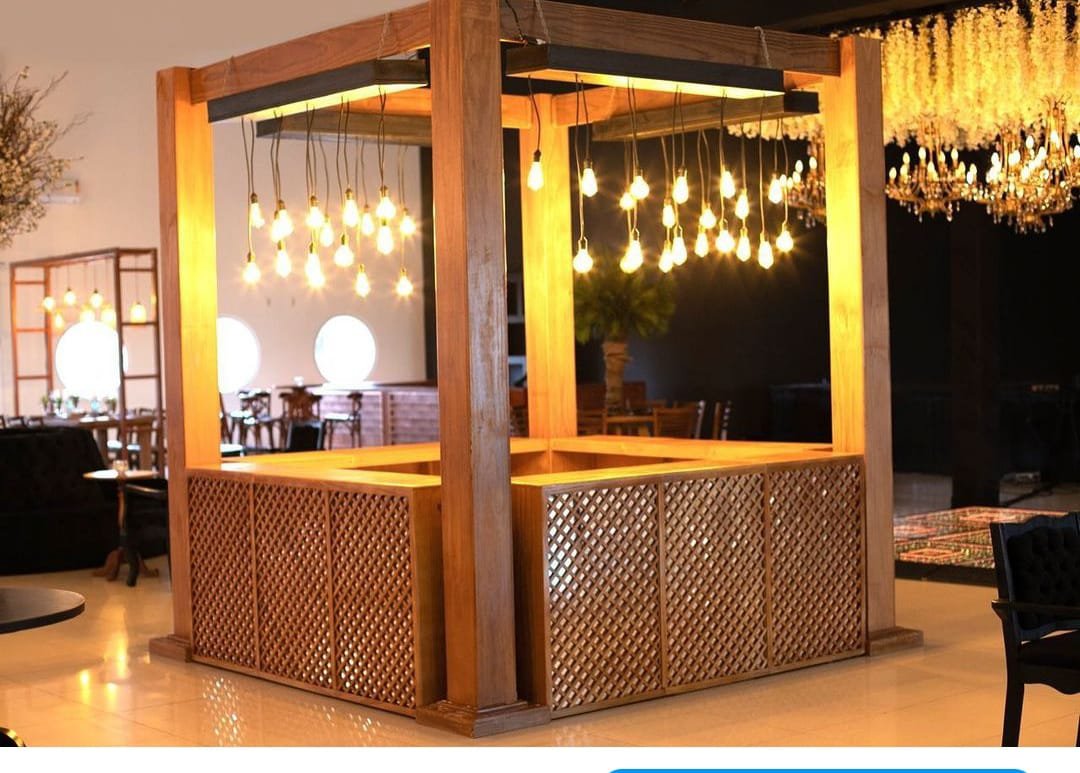 Modulo de bar Imbuia treliçado detalhe espelhado