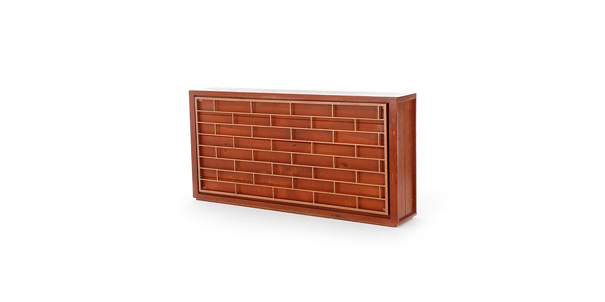 Modulo de bar em madeira cor mogno com grade de ferro cobre