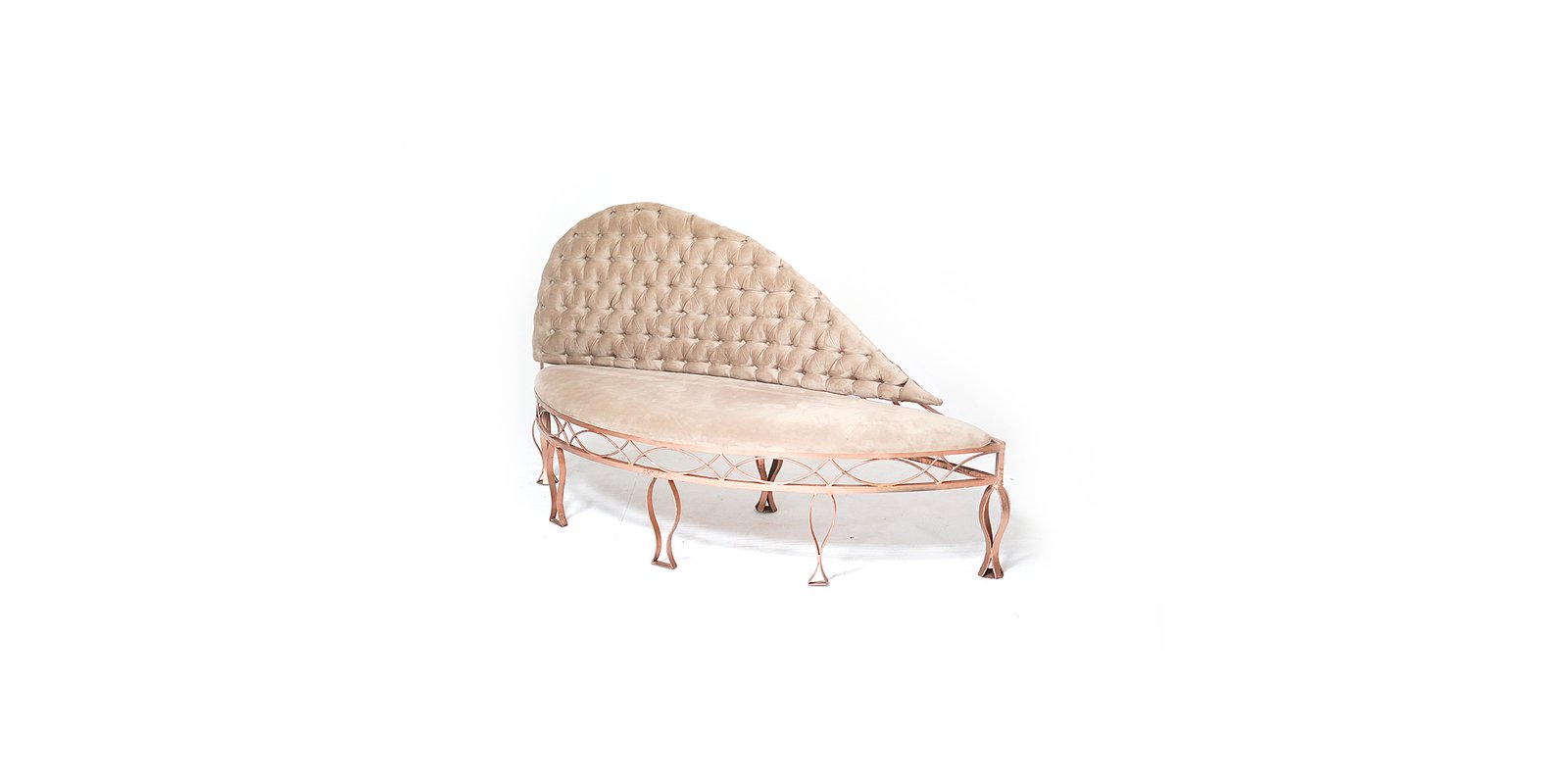 Chaise longue em ferro na cor preta com estofado na cor fendi marrom