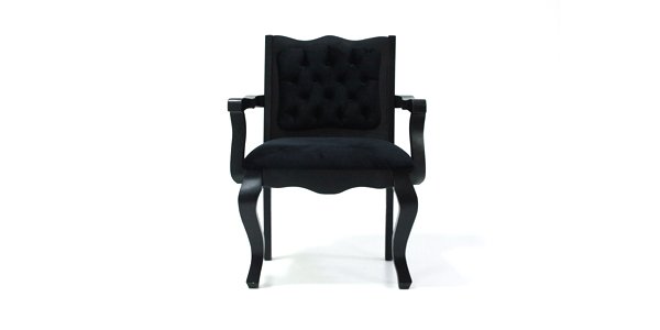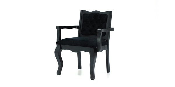 Poltrona modelo Luiz XV estofado e estrutura na cor preta