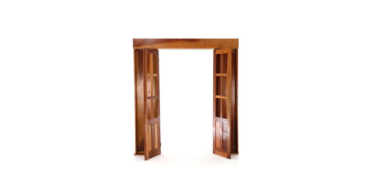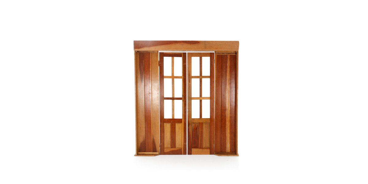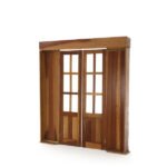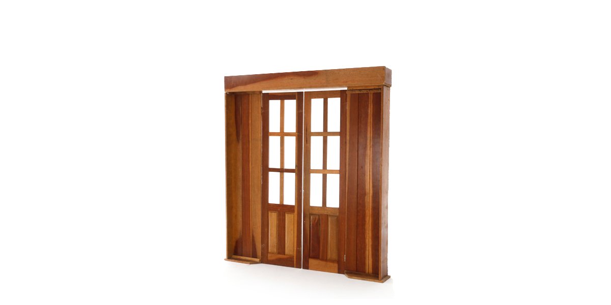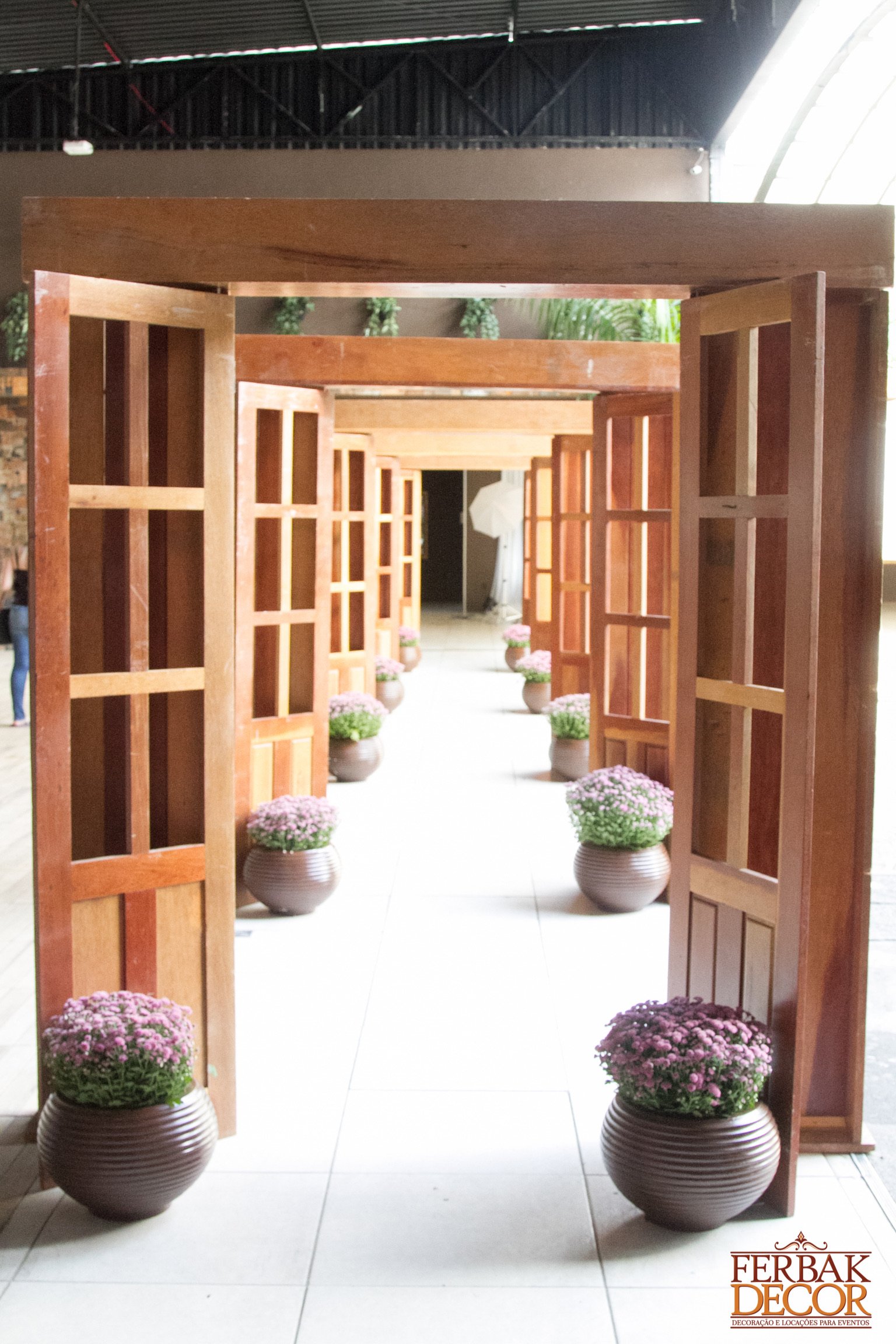 Porta de madeira cambara com estrutura para áreas externas, possui floreira na parte superior