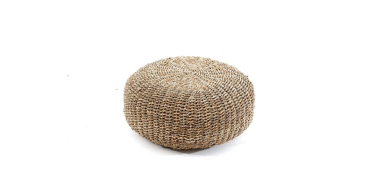 Puff redondo baixo em rattan
