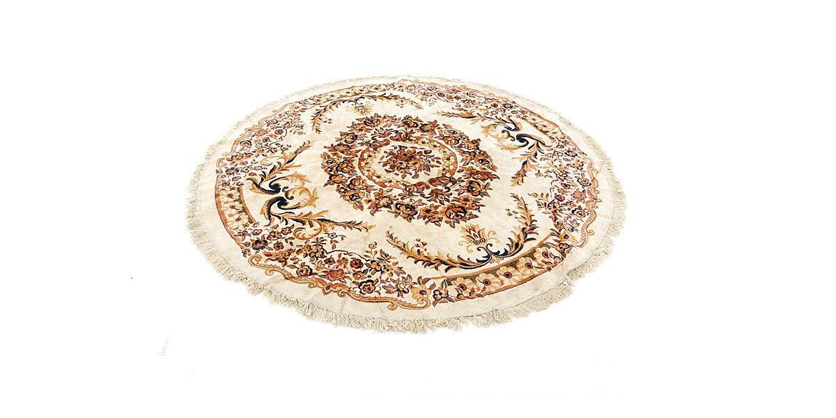 Tapete redondo Persa com desenhos de flores em tons de marrom e bege