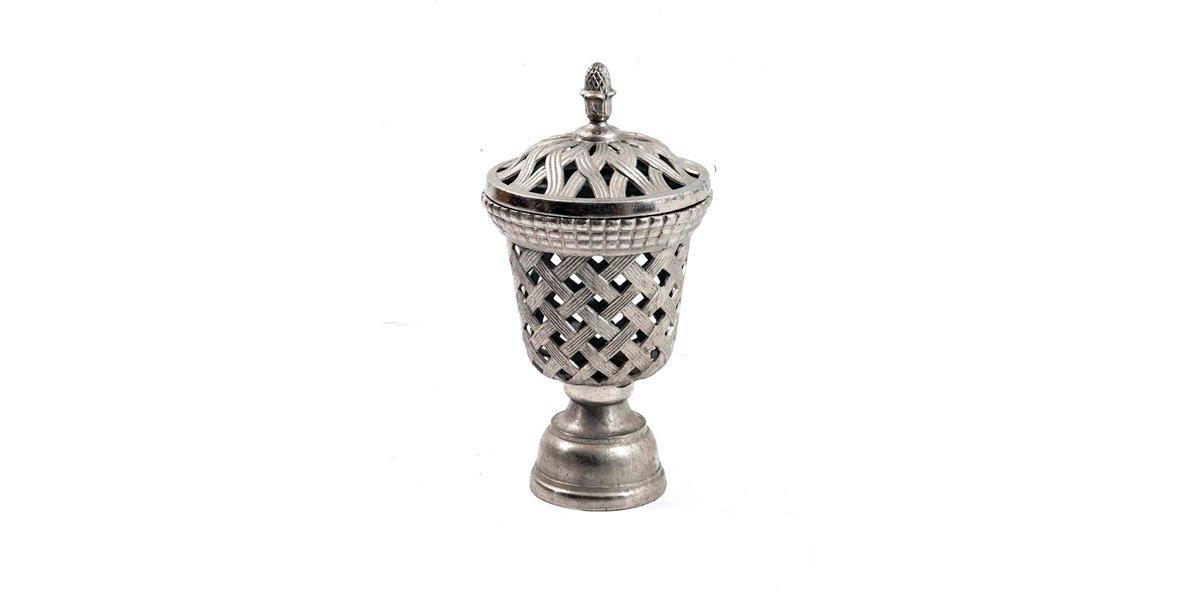 | Vaso de aço escovado formato de ânfora com tampa na cor prata